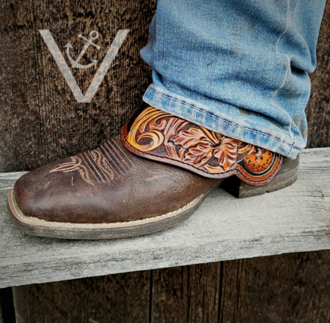 Liven up your arena look with these breathtaking hand-tooled leather spur straps, featuring a vibrant and detailed Desert Rose motif. Crafted from premium skirting leather, these straps offer the perfect blend of elegant Western design and rugged durability.